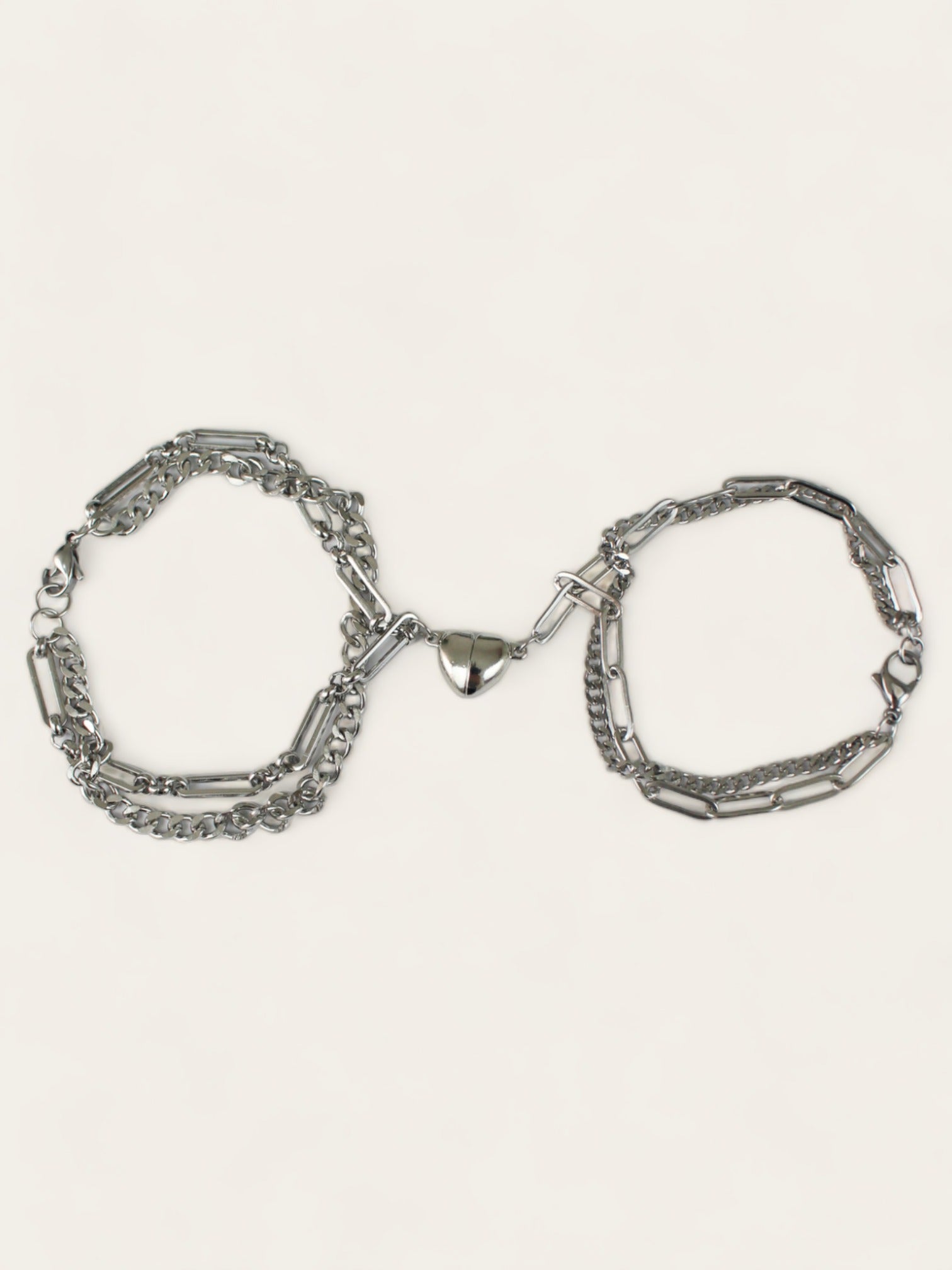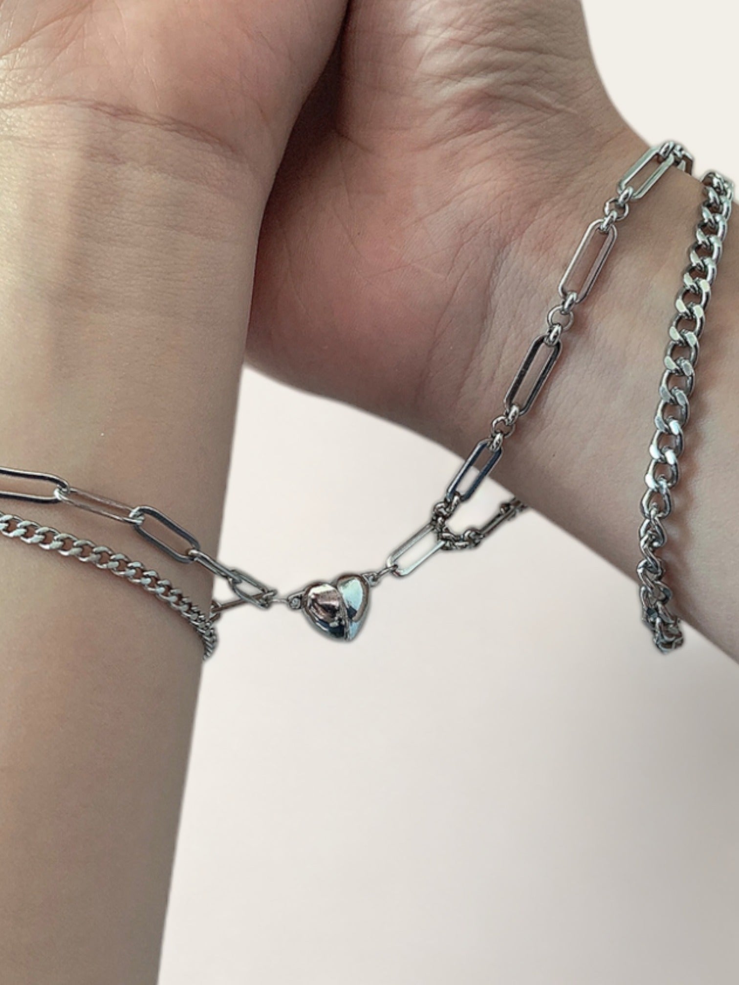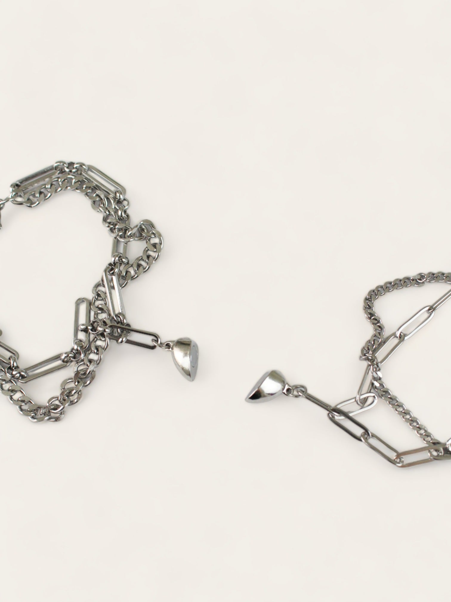 A pair of two bracelets with a magnetic heart that pairs together. Share these pieces with your special other half or soulmate.