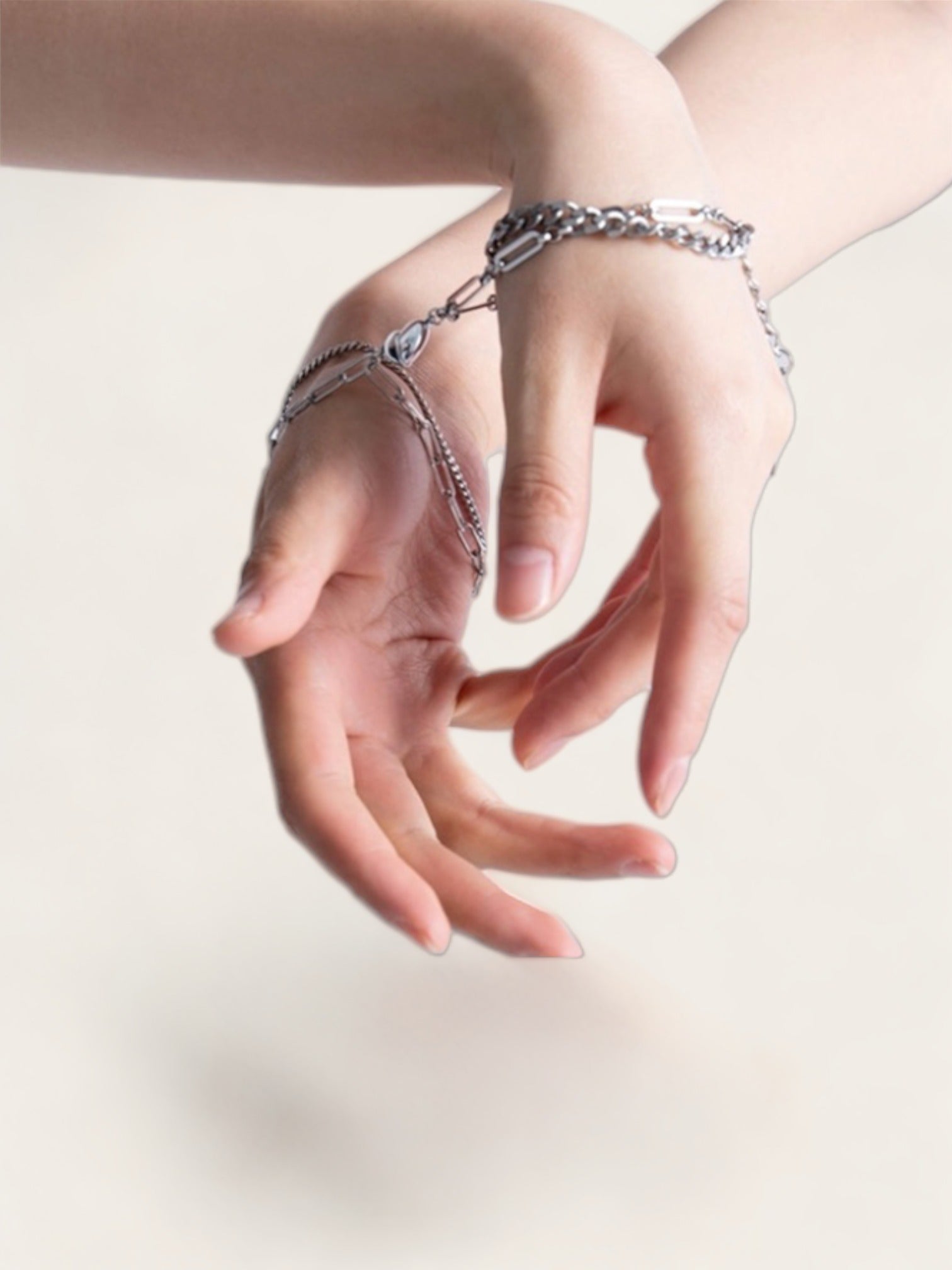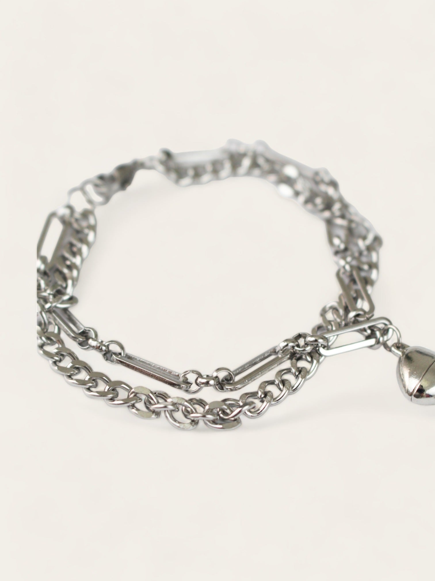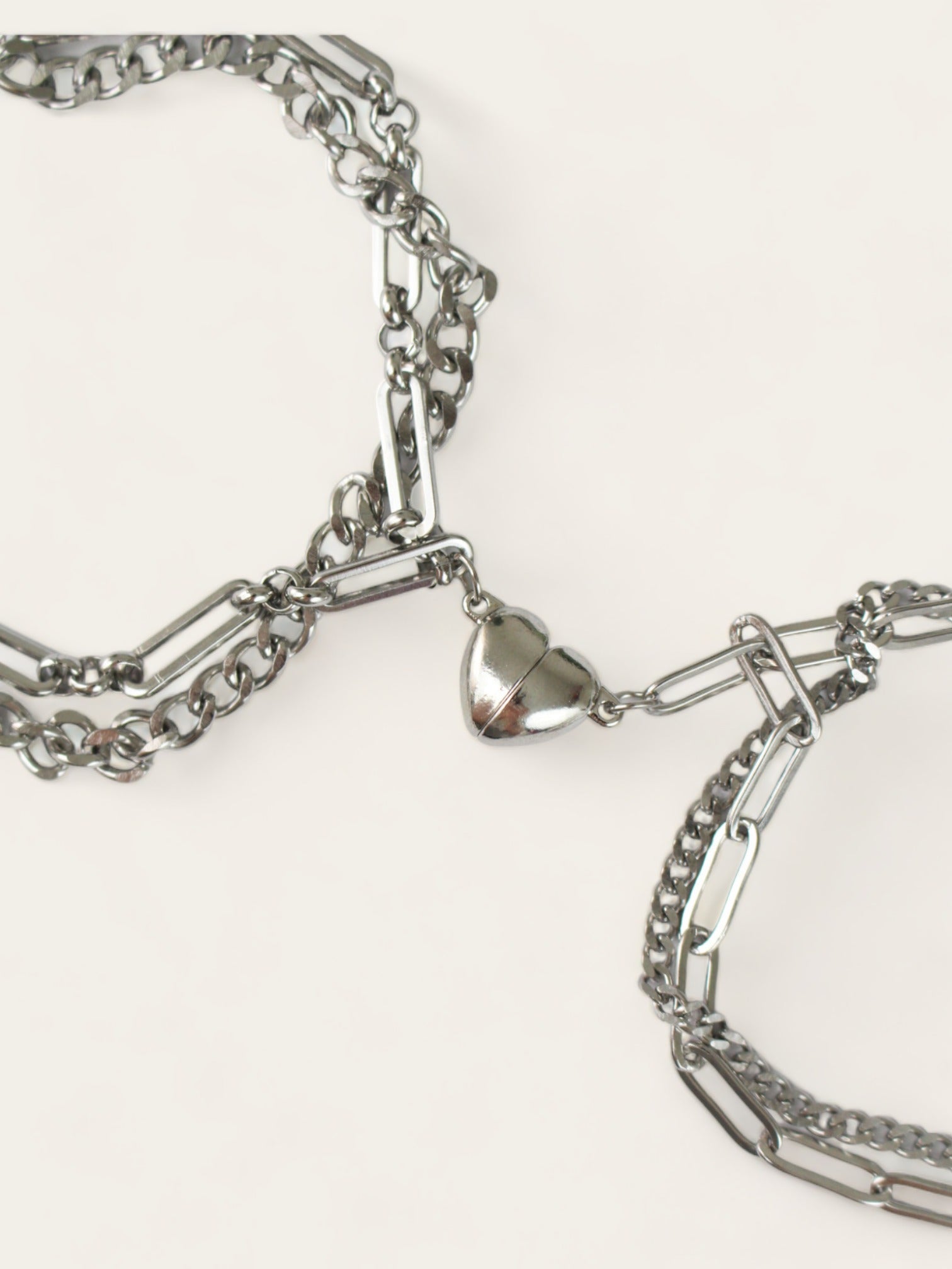 A pair of two bracelets with a magnetic heart that pairs together. Share these pieces with your special other half or soulmate.