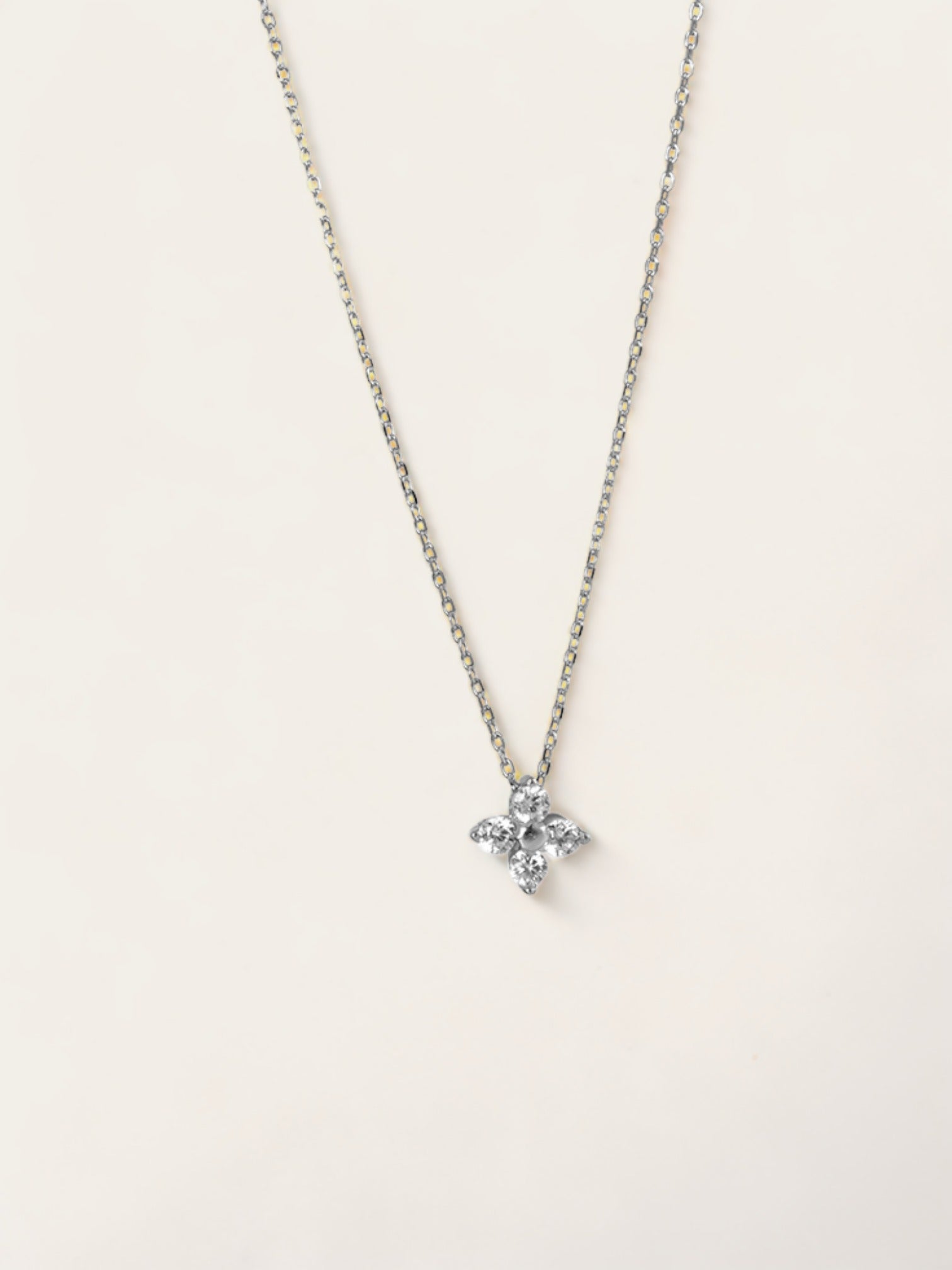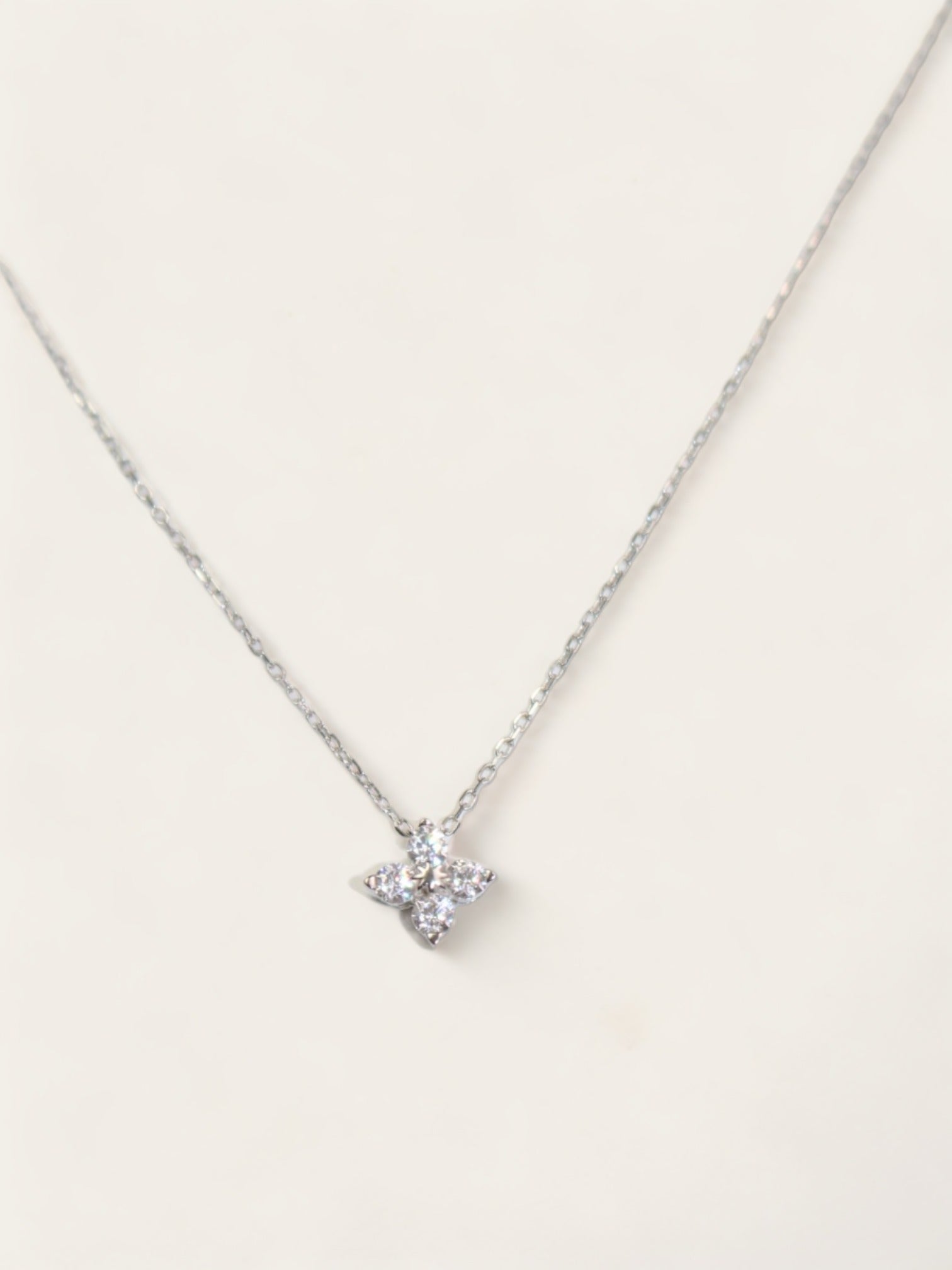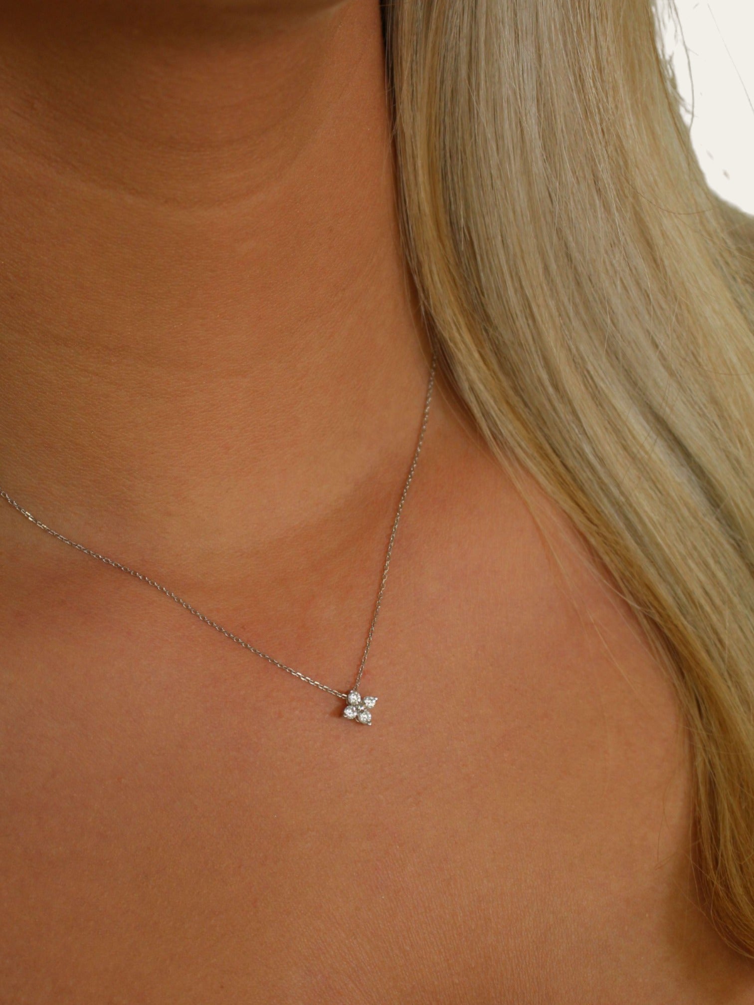 Diamond Flower Necklace - Silver
