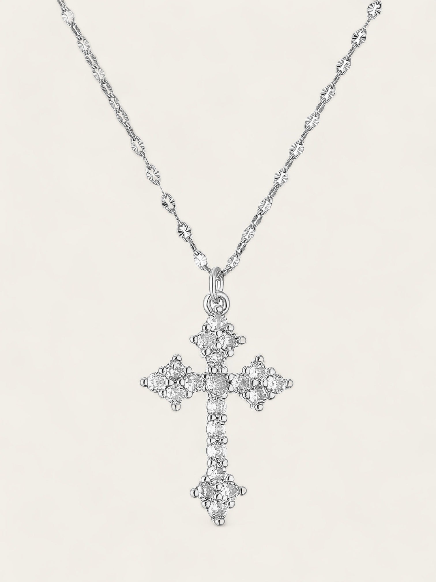 Crystal Cross Necklace - Silver