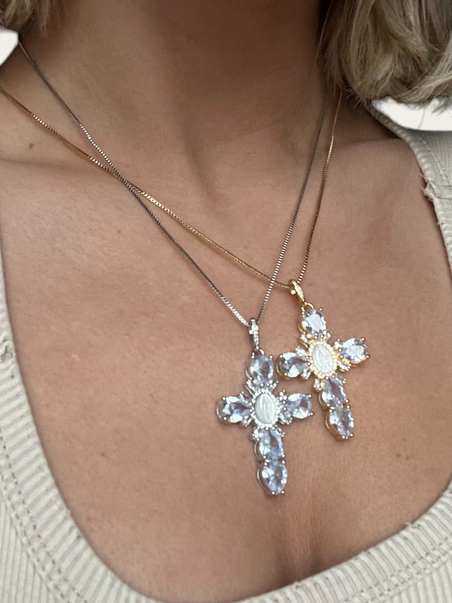 Mary Cross Necklace - Silver