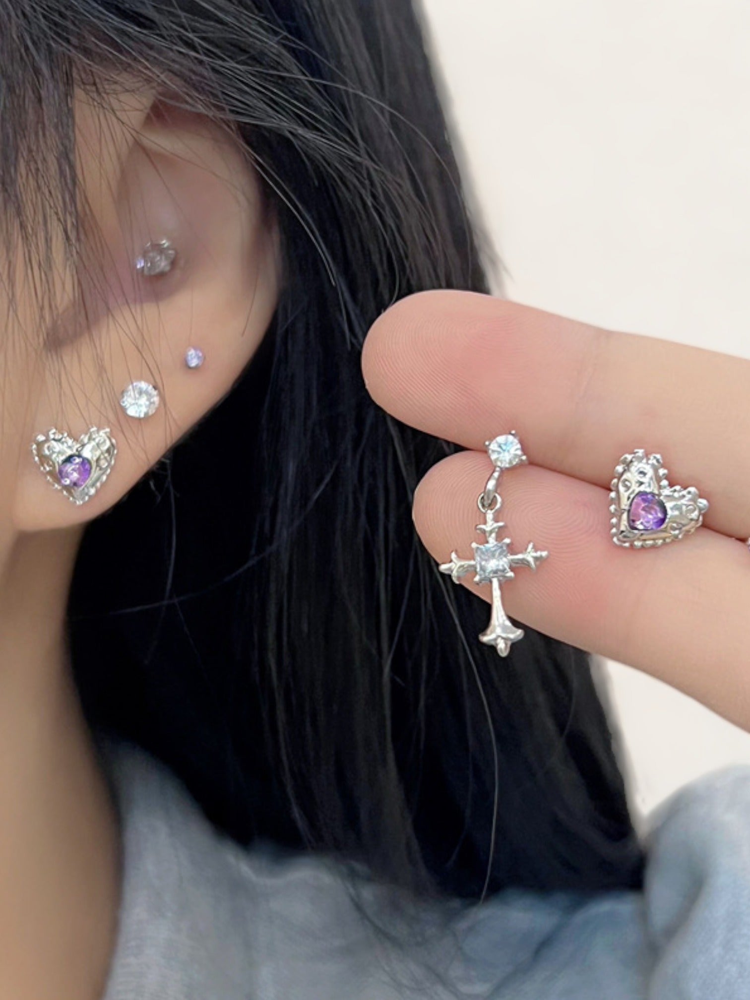Purple Cross Stud Set