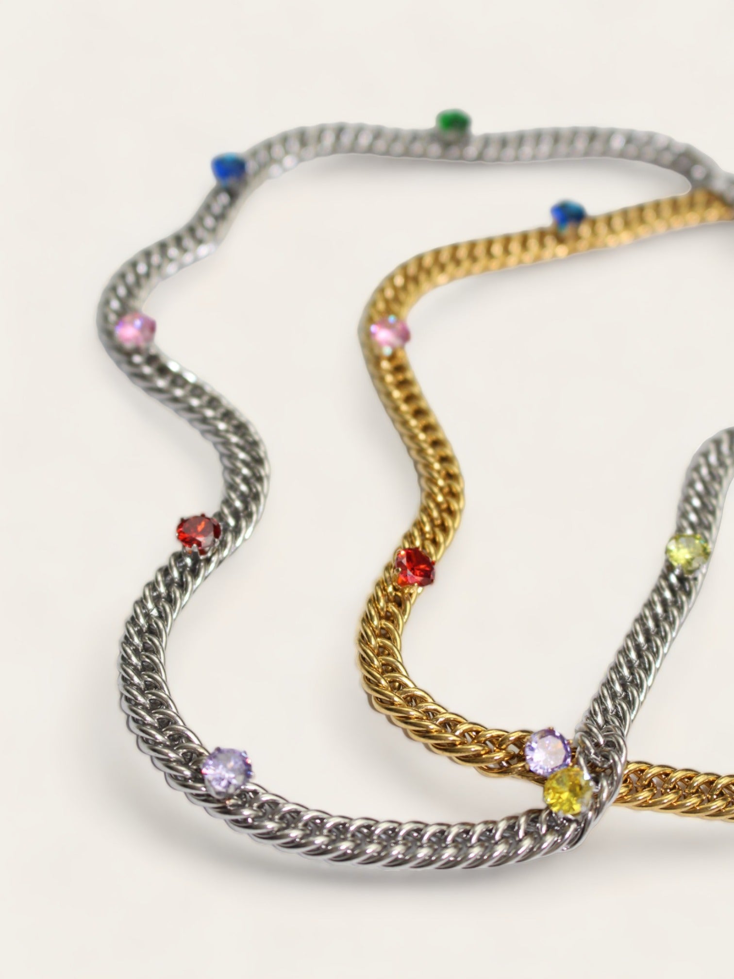 Stainless steel is a highly durable metal, allowing it to withstand the wear and tear of everyday activities, which can otherwise damage jewellery. The hard metal resists scratches and corrosion thanks to an invisible layer of chromium that prevents oxidation.
