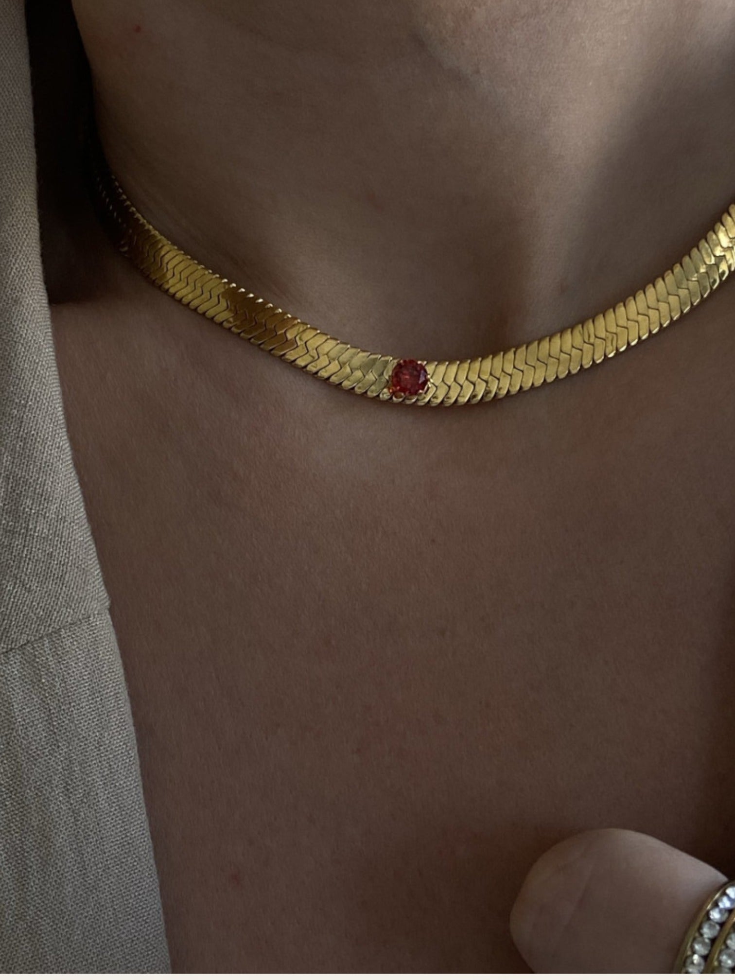 Red Gem Herringbone Chain