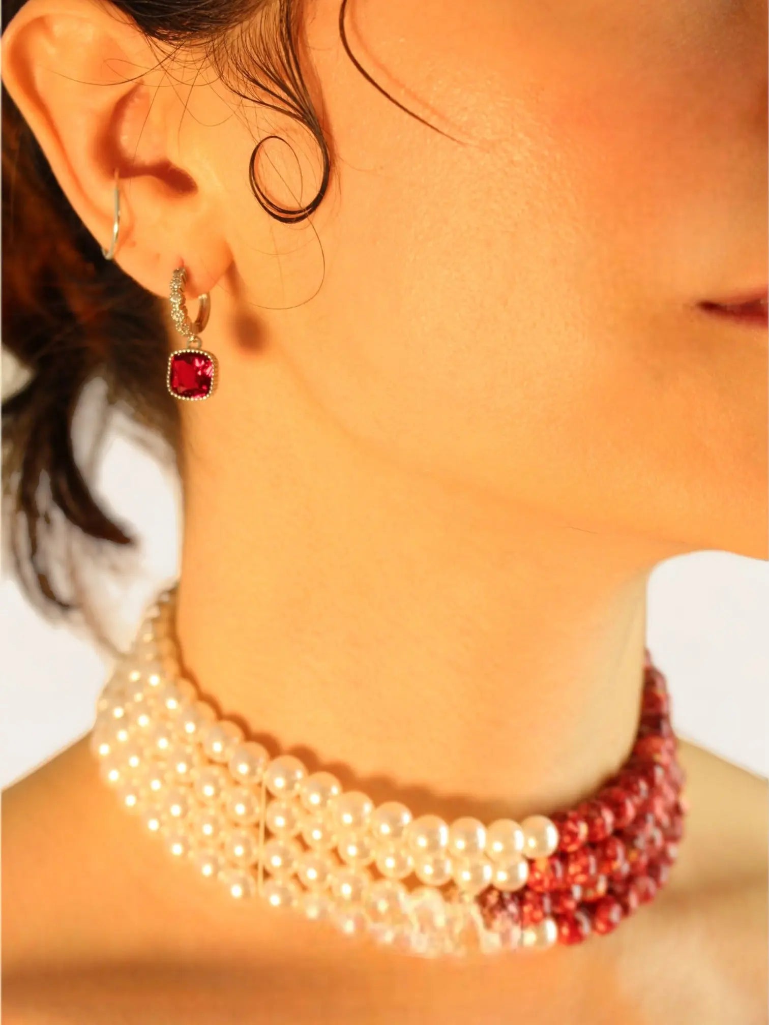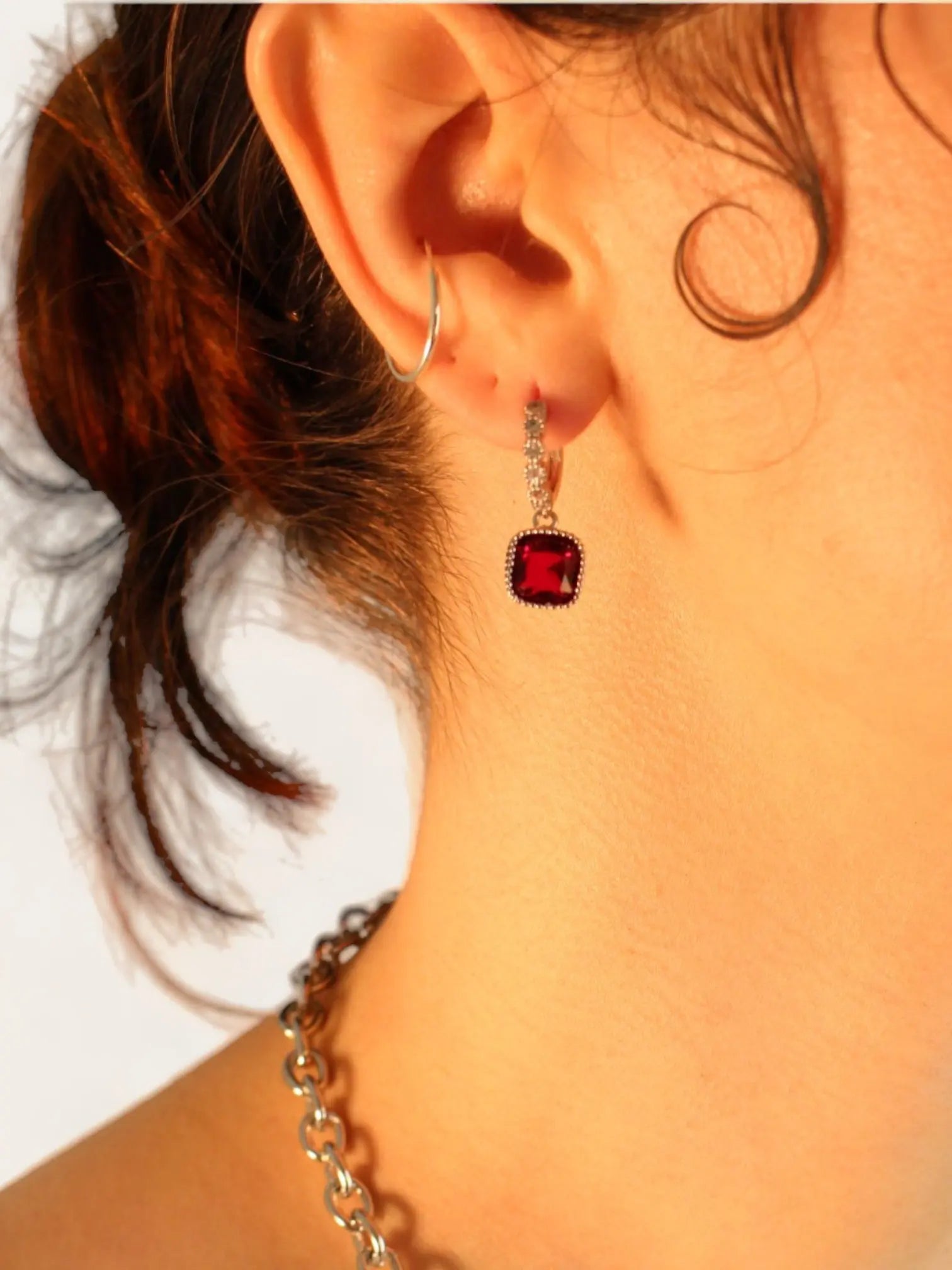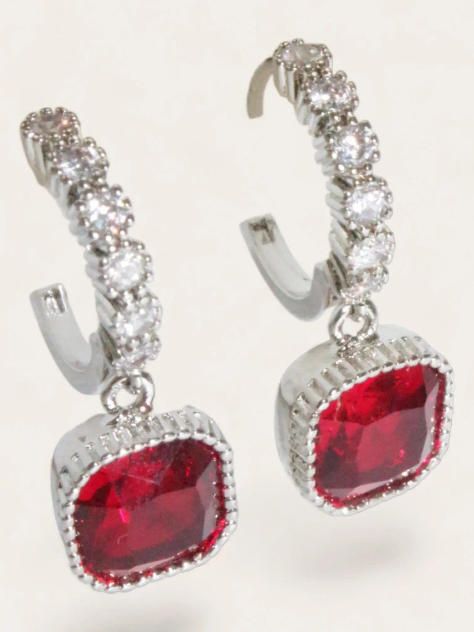 Square Diamond Earrings - Red