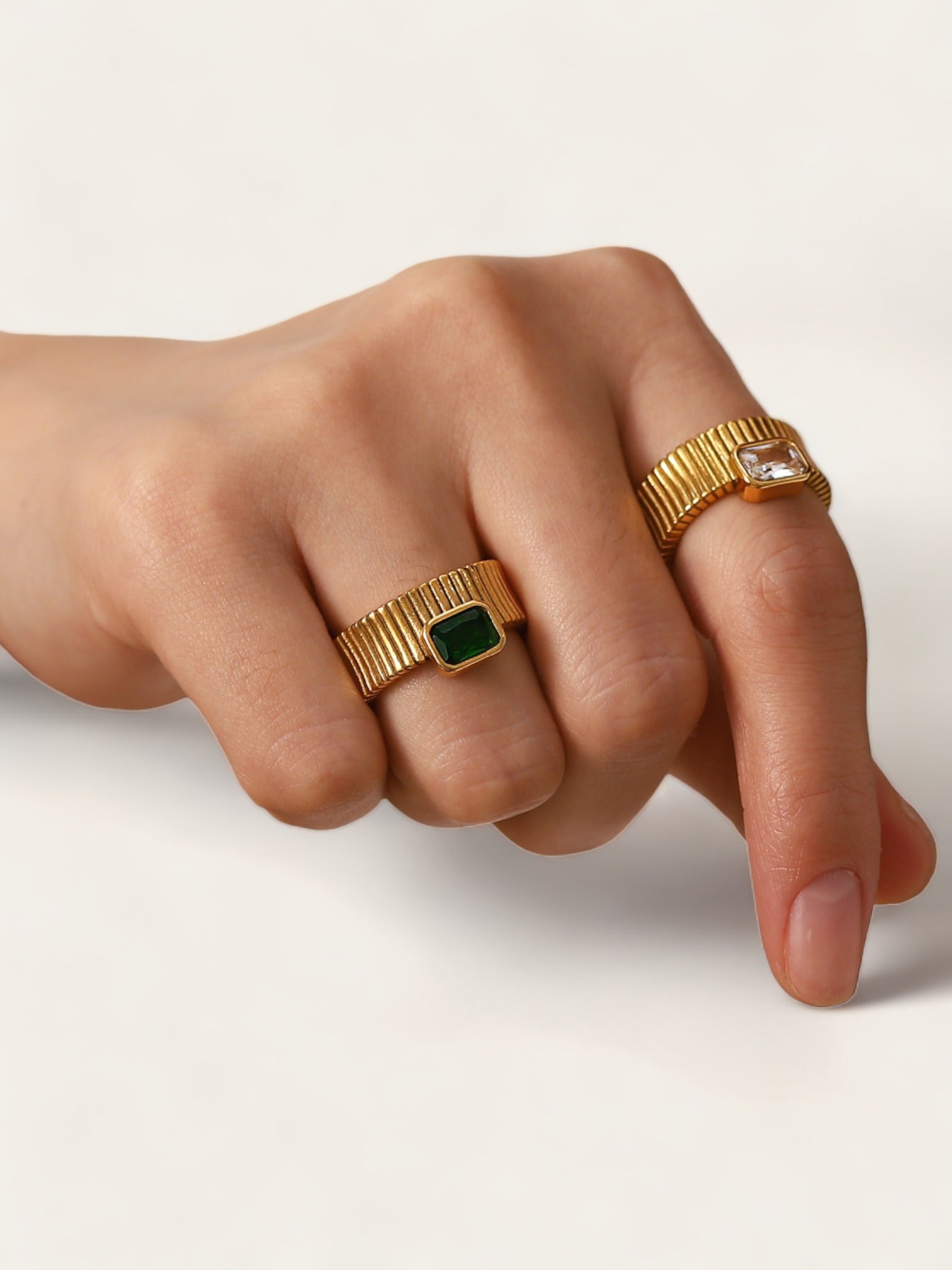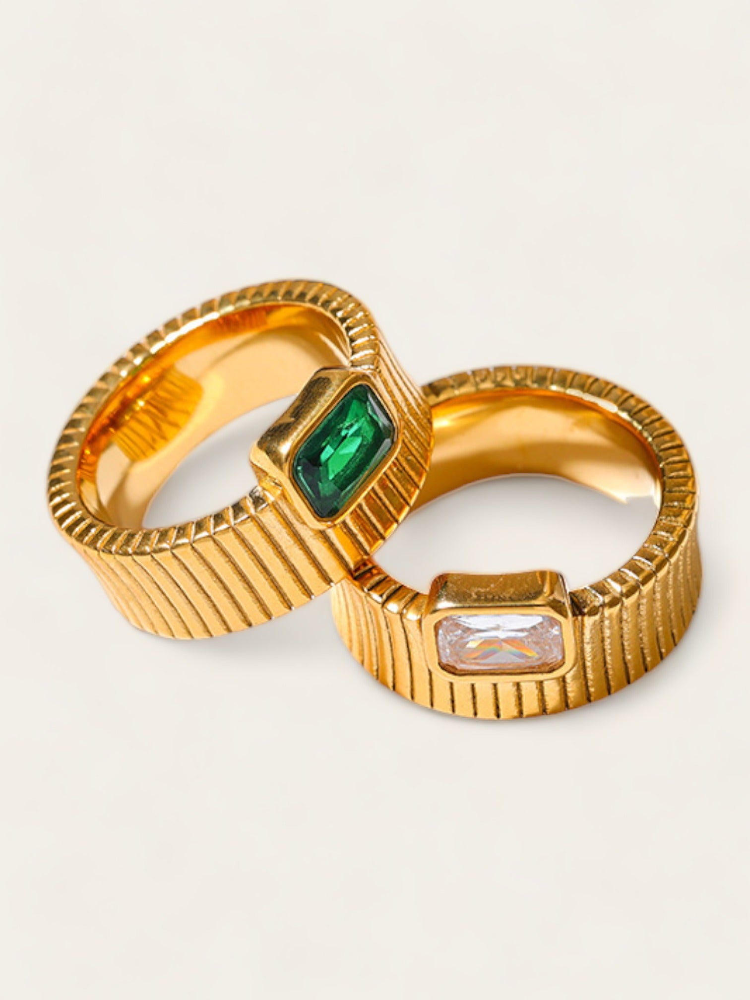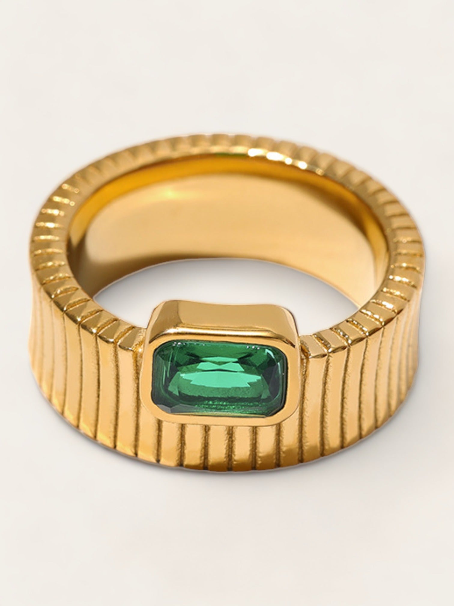 Ribbed Green Diamond Ring