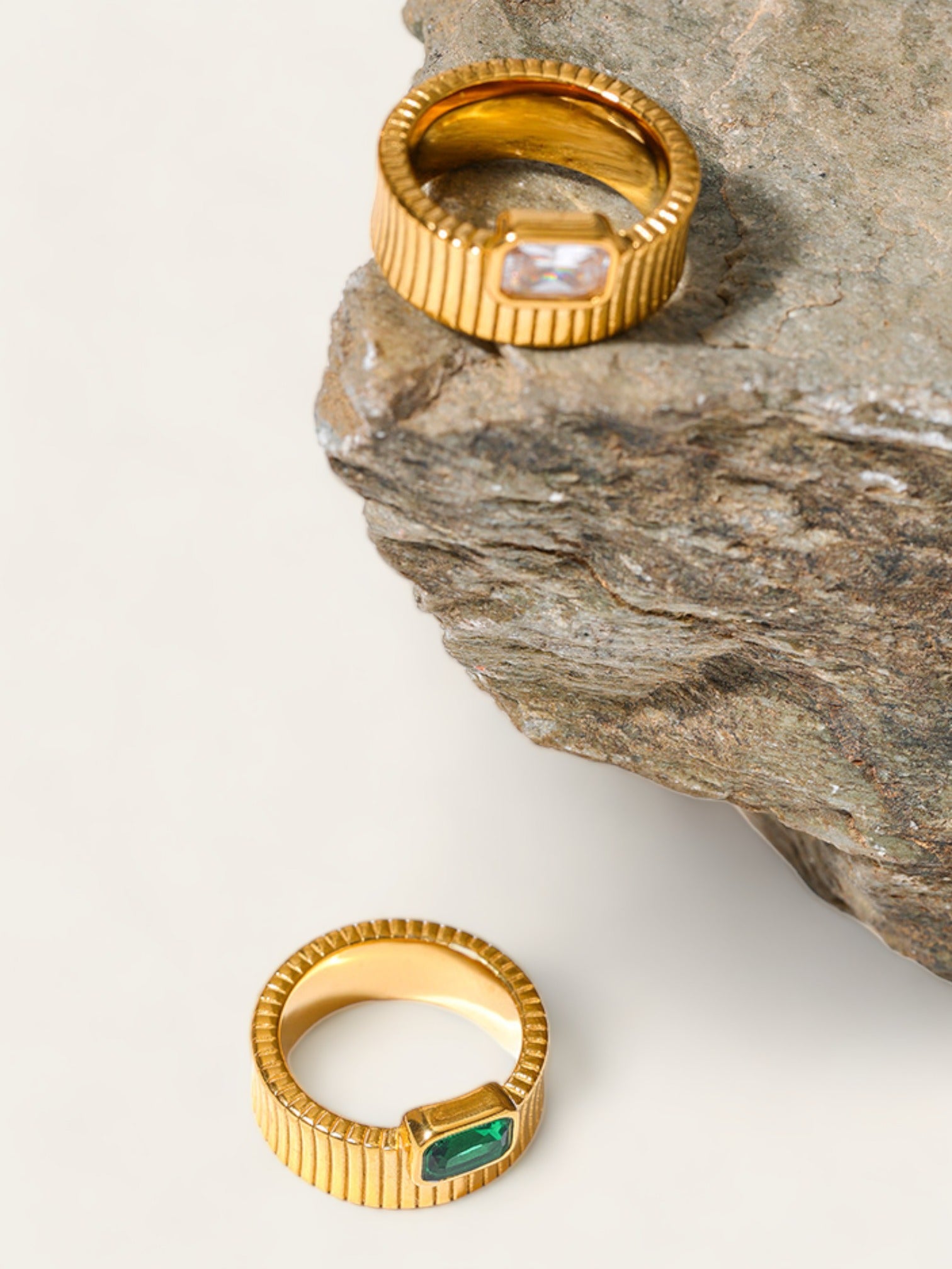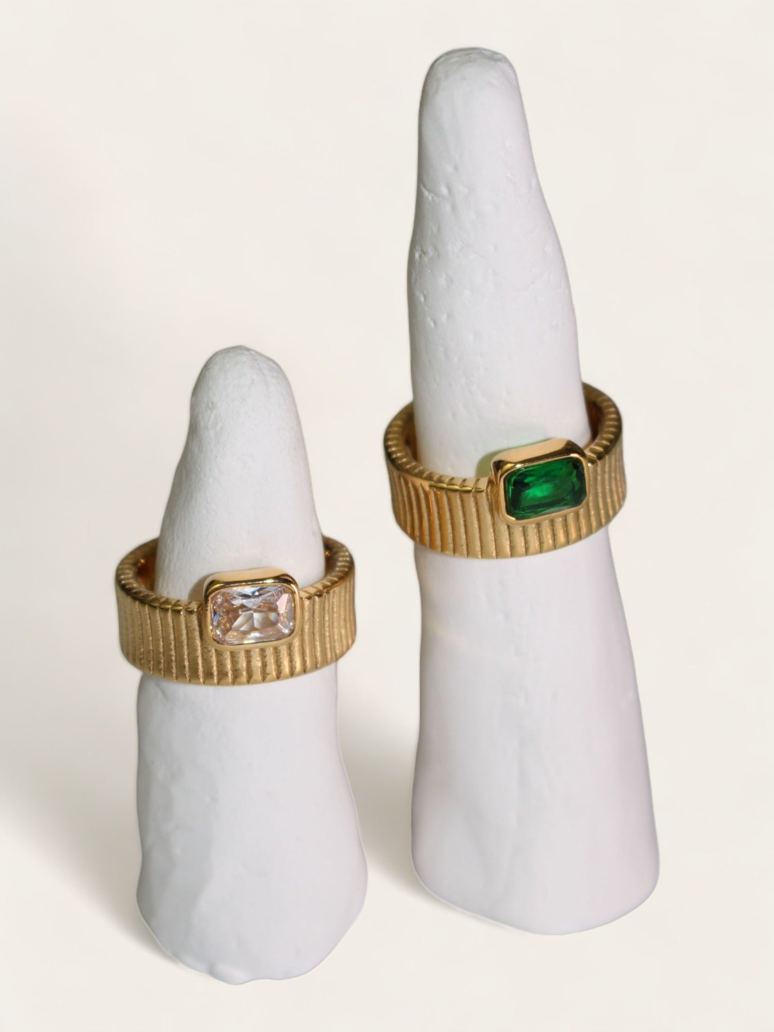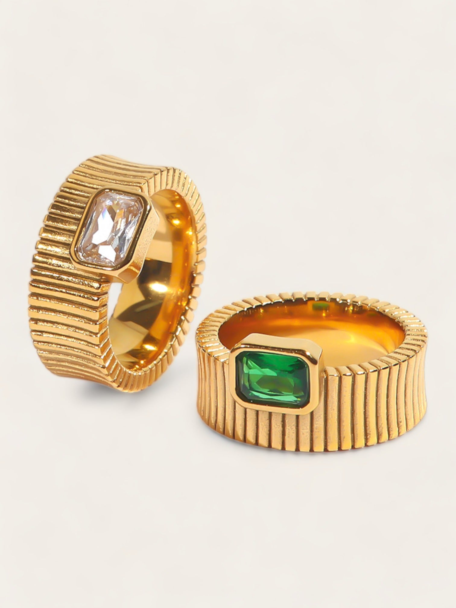 Ribbed Green Diamond Ring