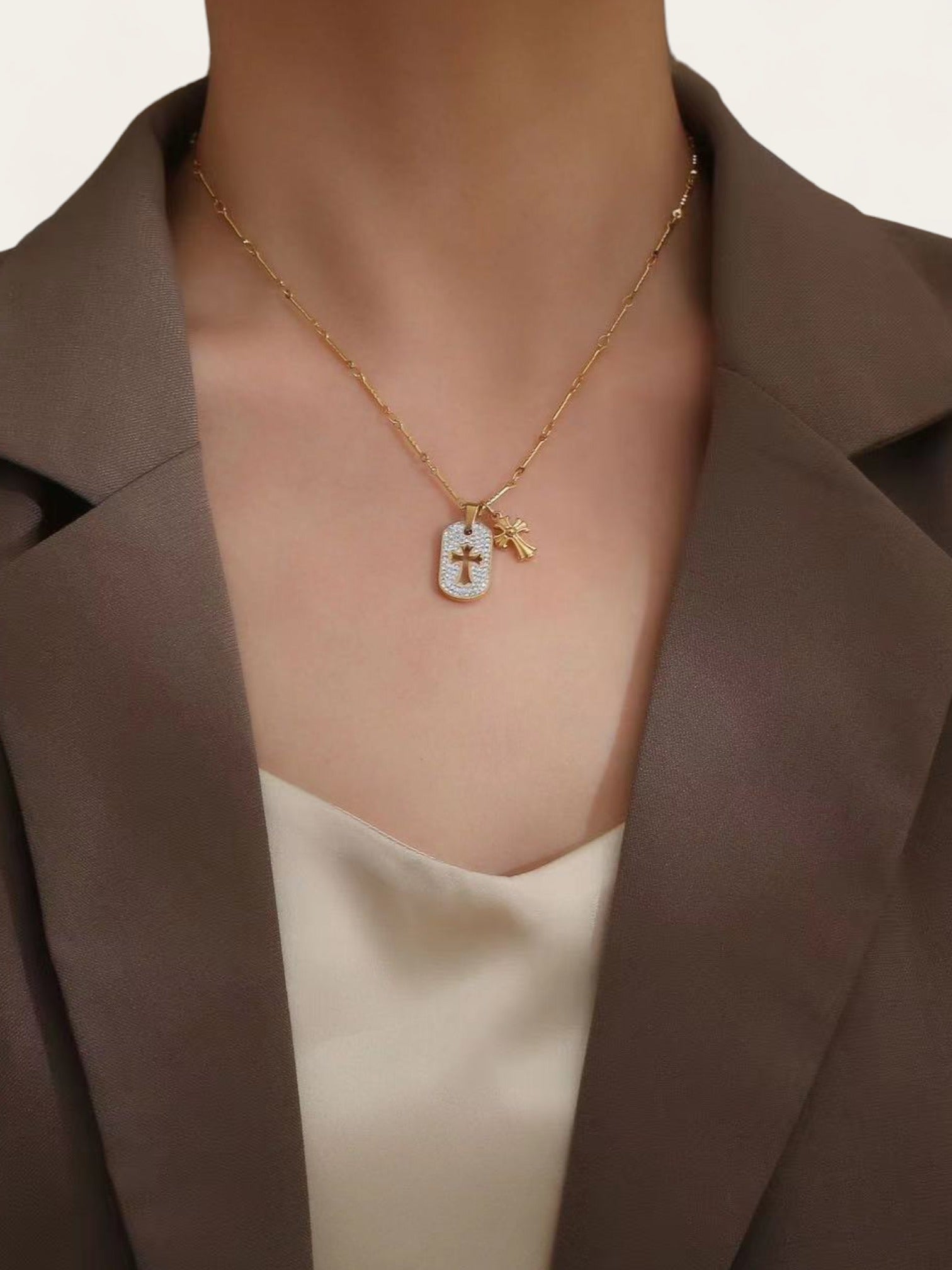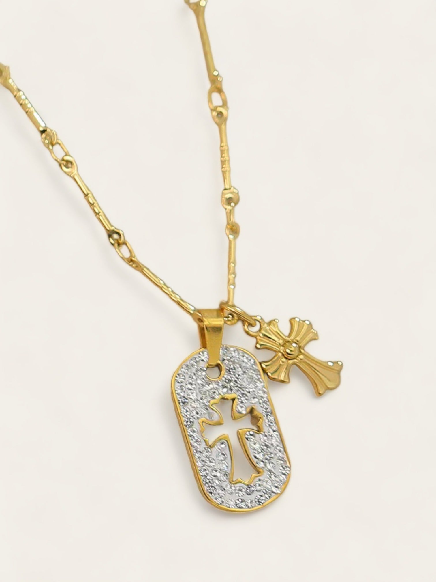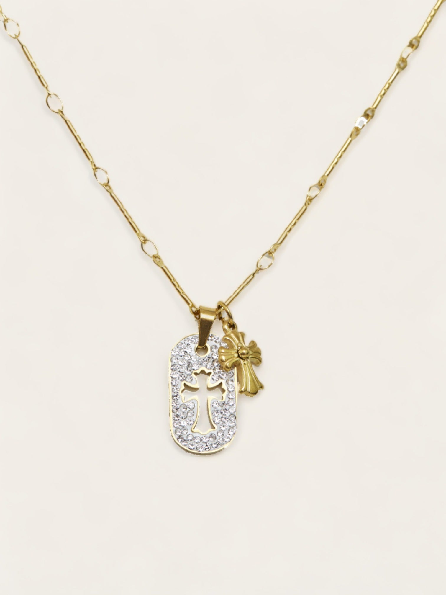 Double Diamond Cross Necklace