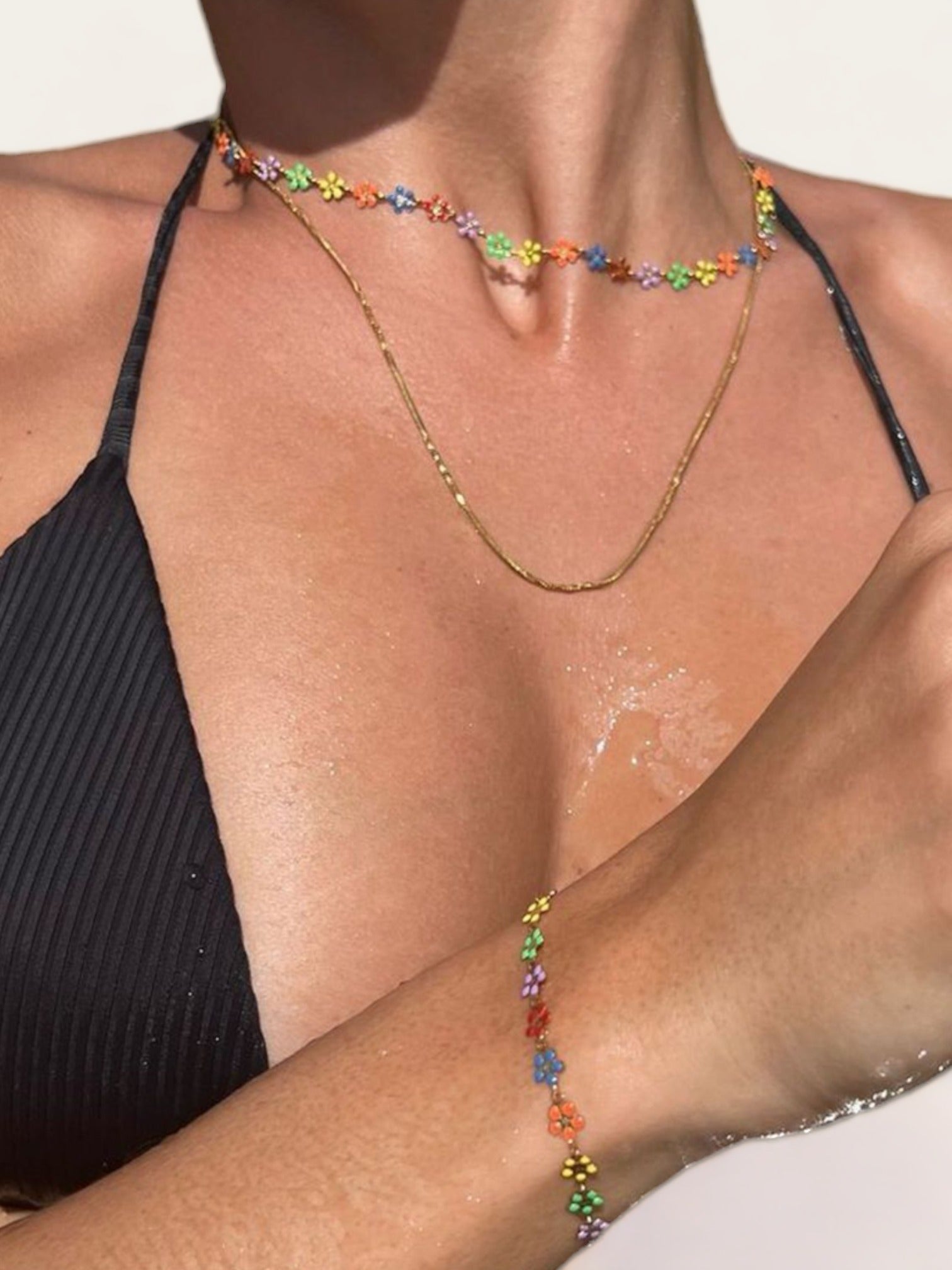 If your stainless steel pieces contain other metals such as gold or platinum in the plating, the piece is waterproof, however wearing it in the shower or in the swimming pool can make the plating fade away over time, as chlorine found in the water can damage the other metals on your stainless steel jewelry.