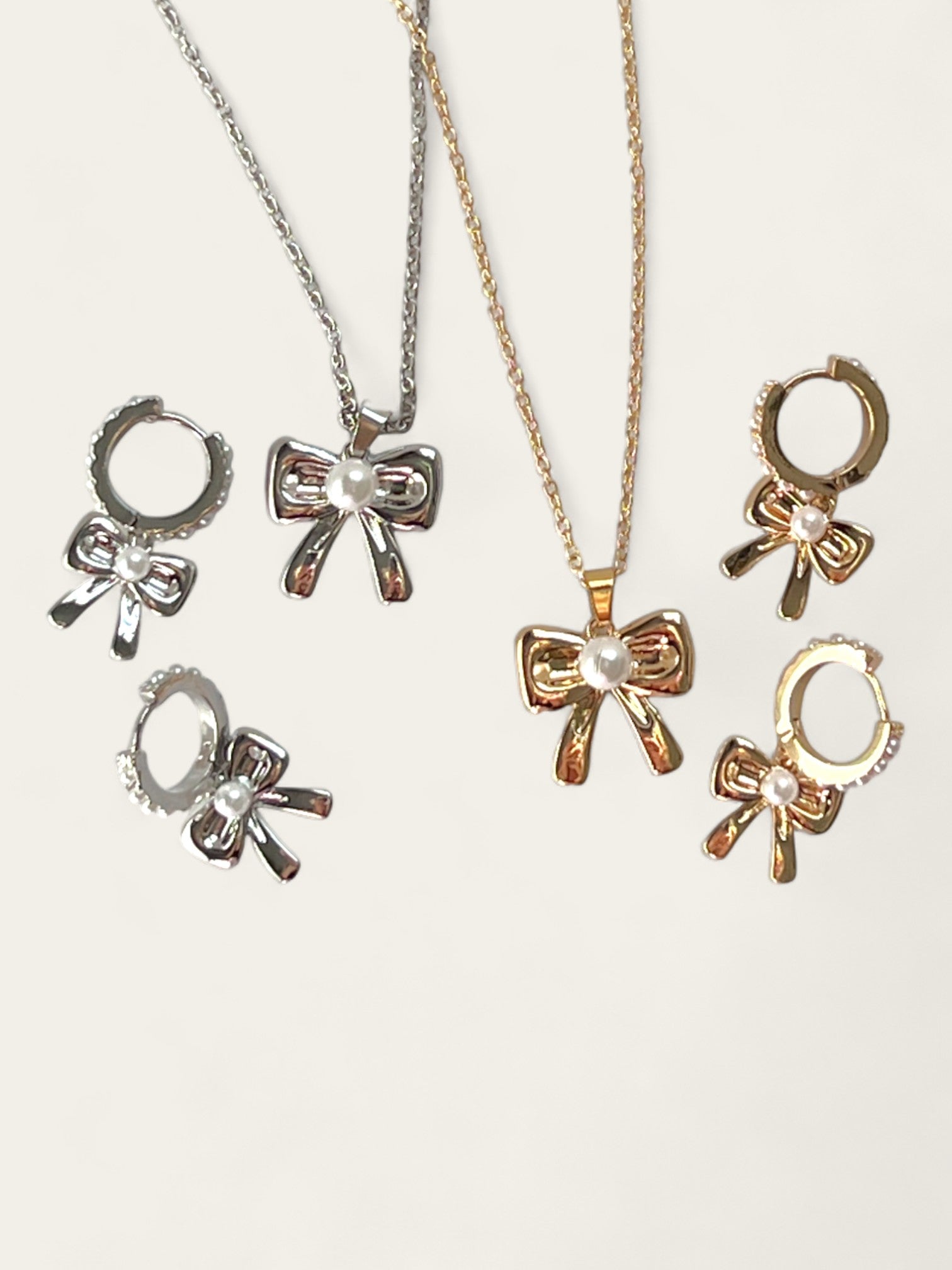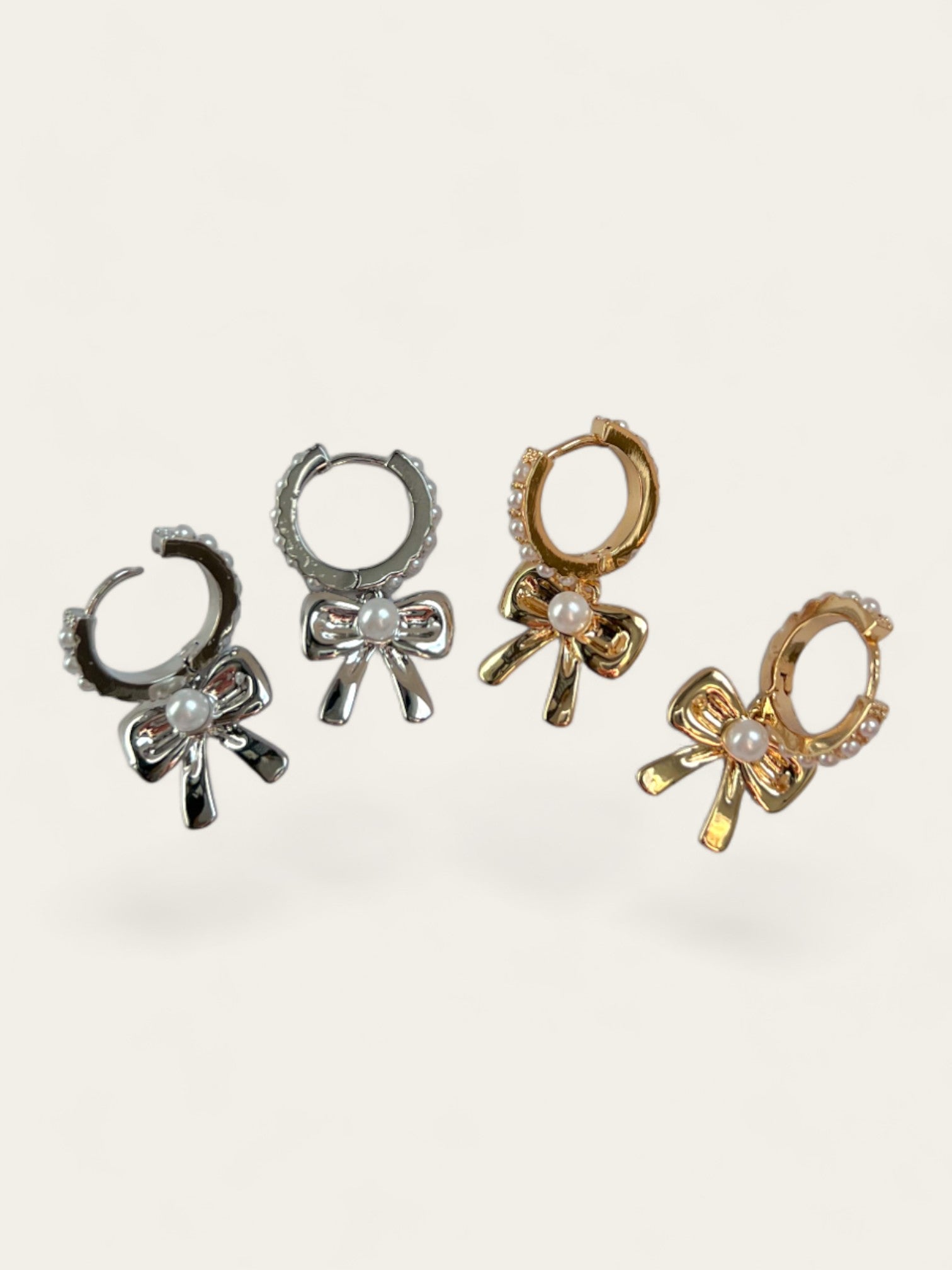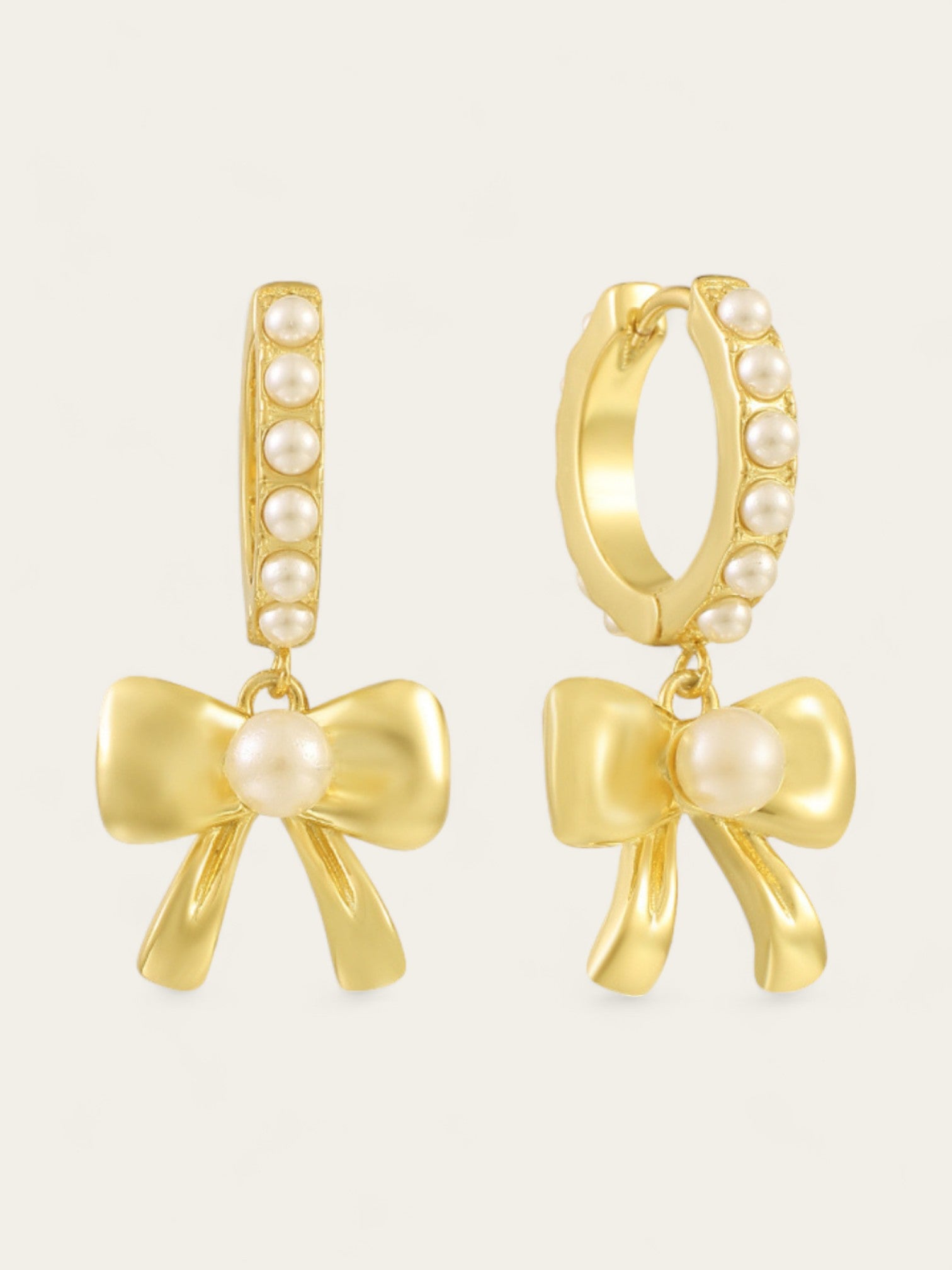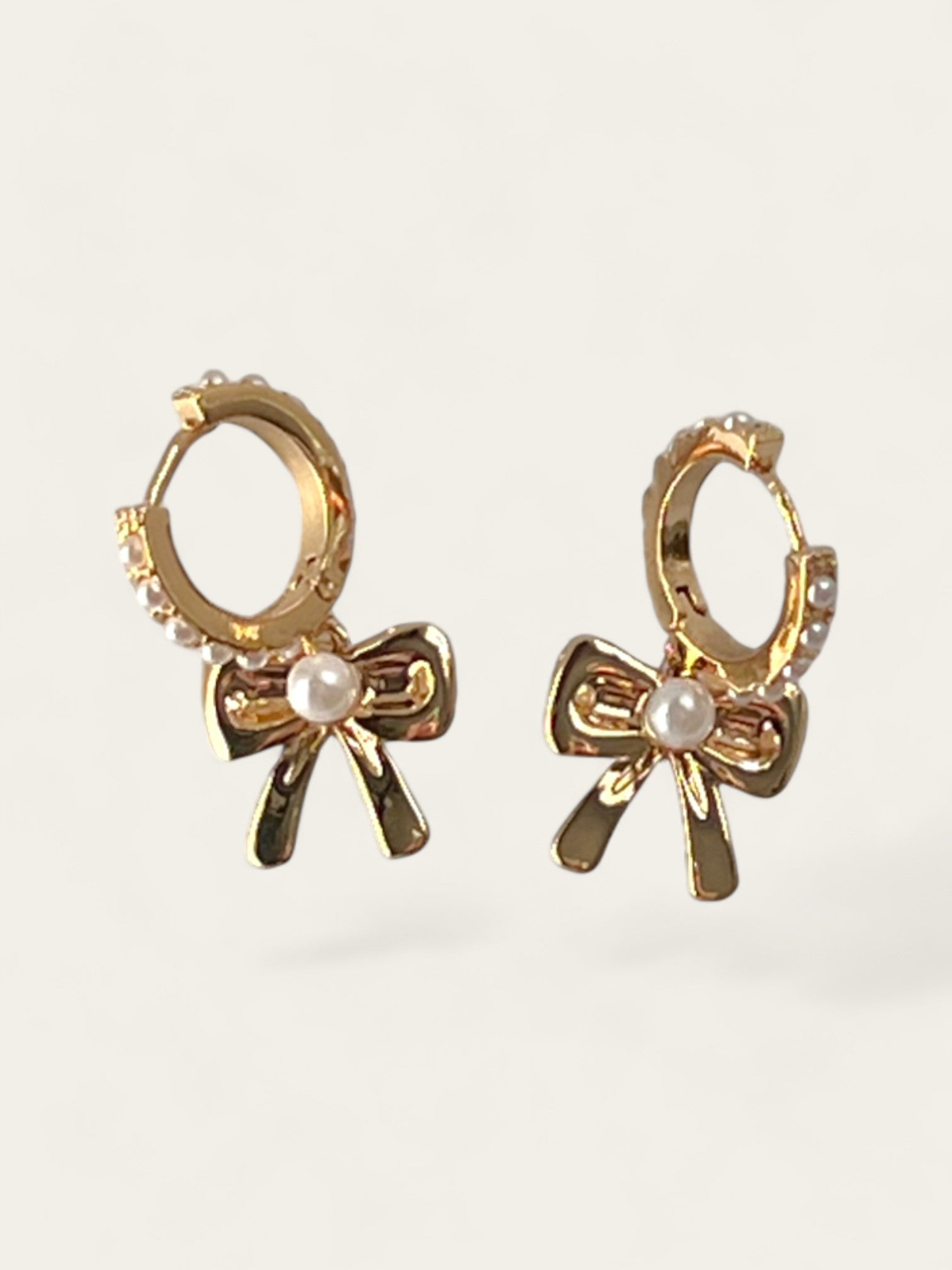 Sweet Pearl Bow Huggies - Gold
