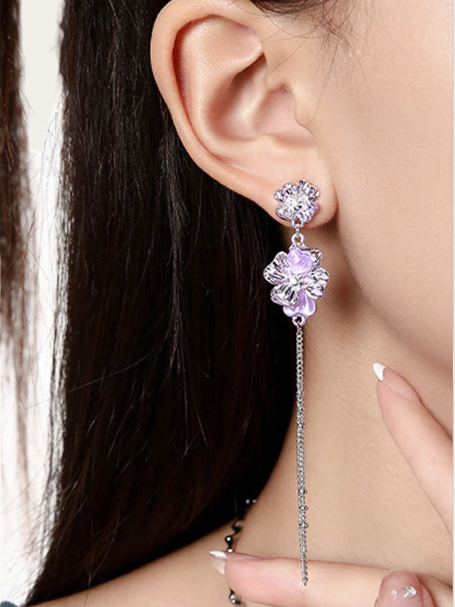 Electric Purple Flower Dangle Earrings