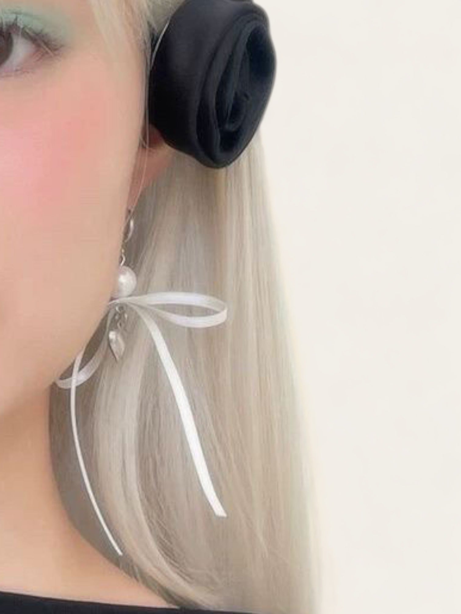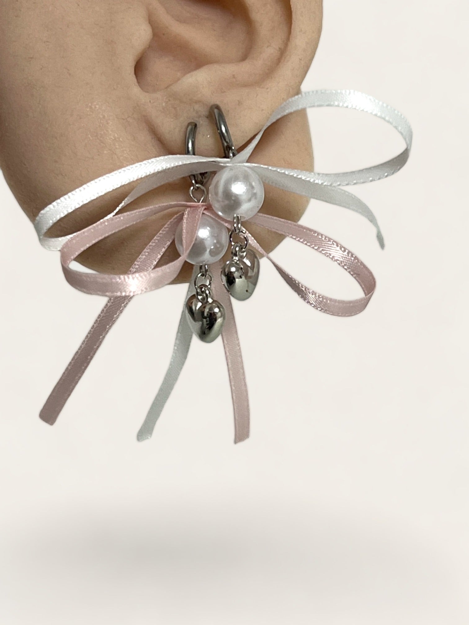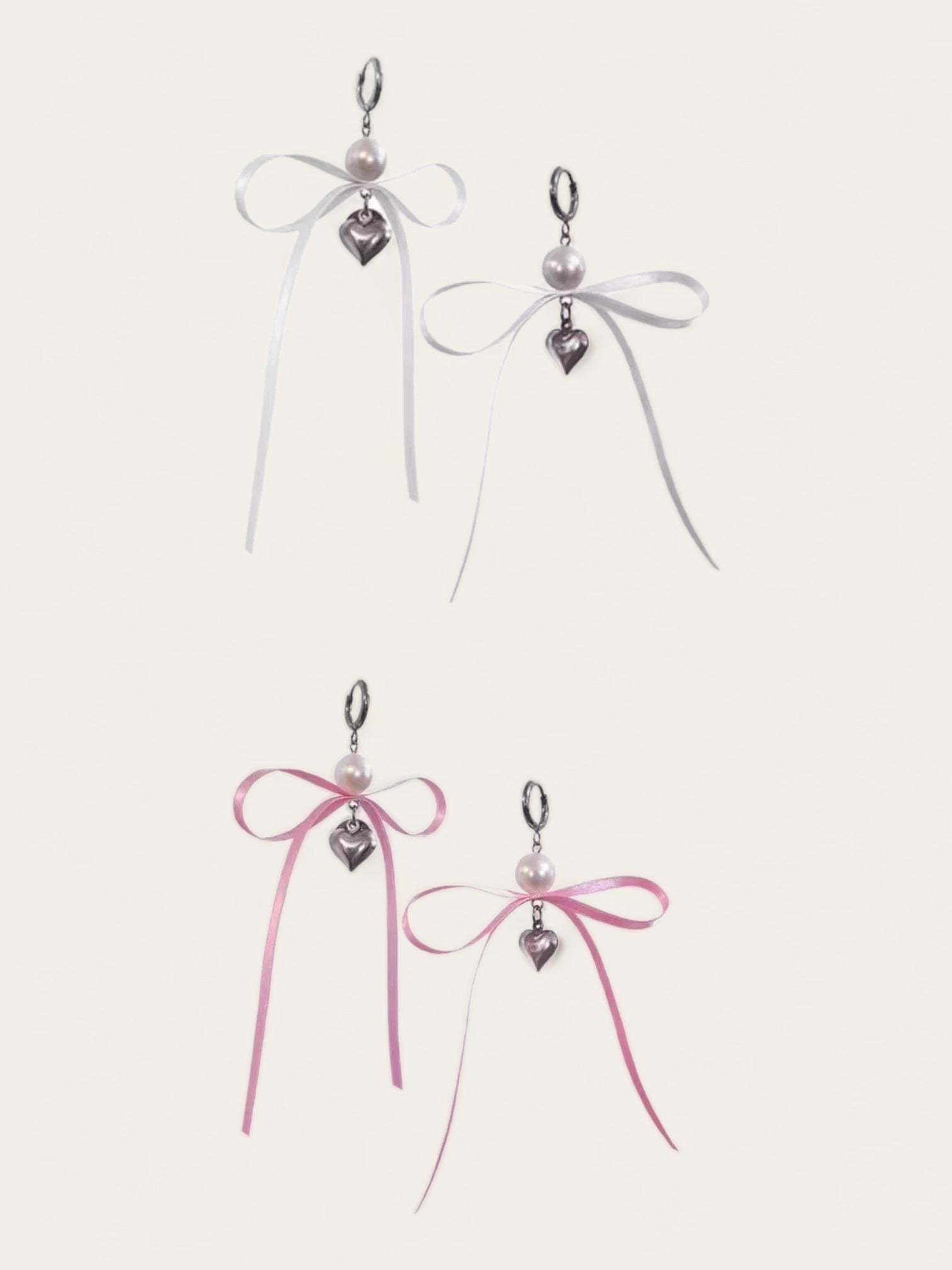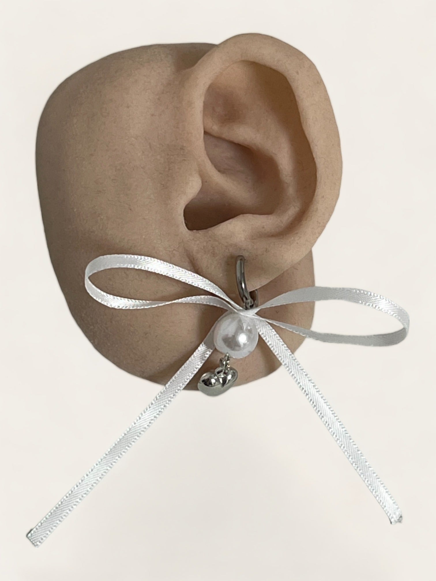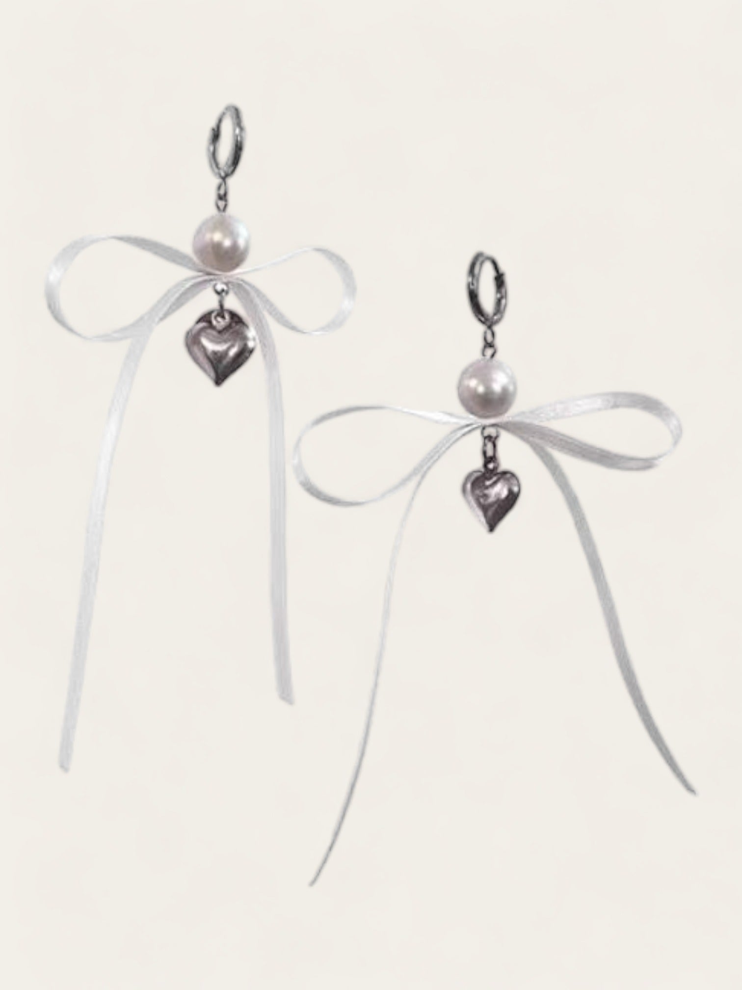 Satin Bow Ribbon Earrings - White